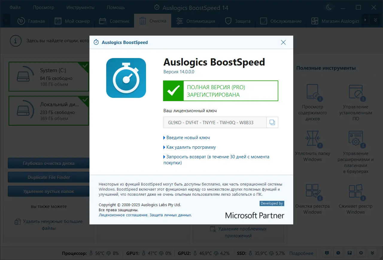 Auslogics BoostSpeed сочетает в себе мощные алгоритмы оптимизации и простоту в использовании, что делает его одним из лидеров в категории системных утилит. Программа регулярно обновляется, поддерживает современные версии Windows и предлагает как базовые, так и продвинутые функции. При этом она не перегружает систему излишними процессами и работает в фоновом режиме с минимальным потреблением ресурсов.