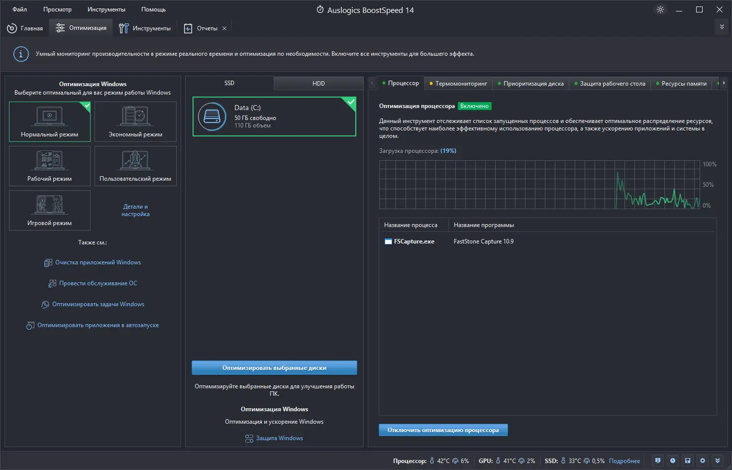 Программа эффективно справляется с фрагментацией дисков и реестра, что положительно сказывается на скорости запуска приложений и общей отзывчивости системы.