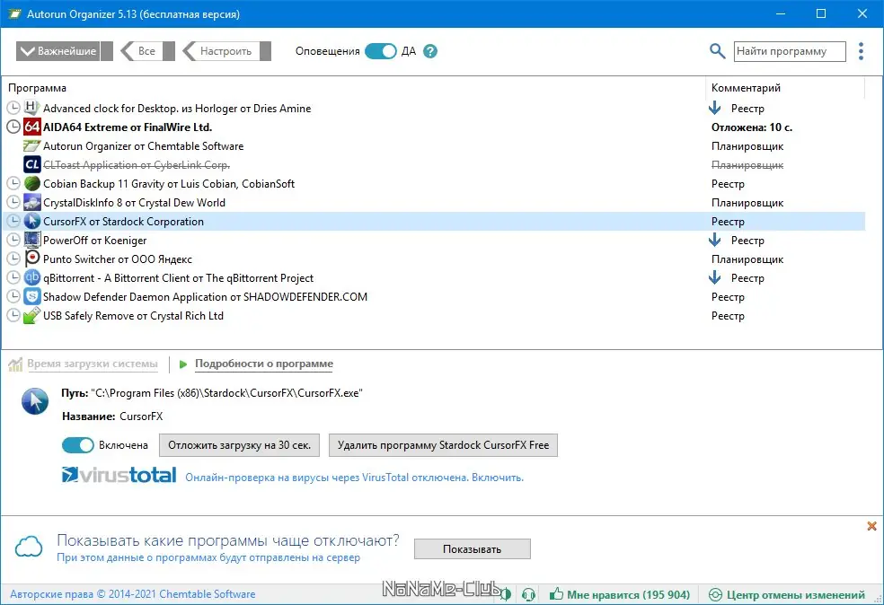 Autorun Organizer — это удобный инструмент для управления программами, запускаемыми при старте операционной системы. Приложение помогает оптимизировать загрузку Windows, управляя автозагрузкой, откладывая запуск приложений и проверяя их на наличие угроз. Программа подходит как для начинающих пользователей, так и для тех, кто глубоко интересуется настройкой системы.
