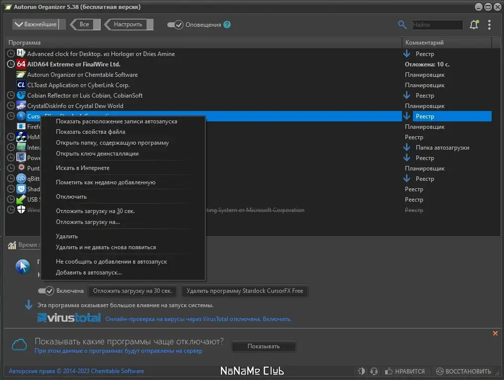 - Гибкое управление автозагрузкой: включение, отключение, удаление и задержка запуска.