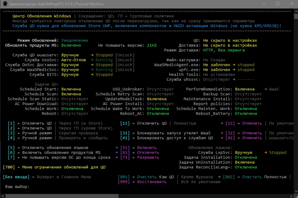 Использование AutoSettingsPS не требует знаний языка PowerShell или дополнительных компонентов. Достаточно распаковать архив, добавить папку в антивирусные исключения и запустить основной bat-файл с правами администратора. Интерфейс построен в виде текстового меню, где каждая опция сопровождается пояснением. Пользователь может выбрать предустановленные пресеты или настроить конфигурацию вручную, активируя нужные модули, такие как отключение телеметрии, настройка индексации или управление UWP-пакетами. После завершения работы скрипт отображает список выполненных действий и предлагает перезагрузить систему для применения изменений.