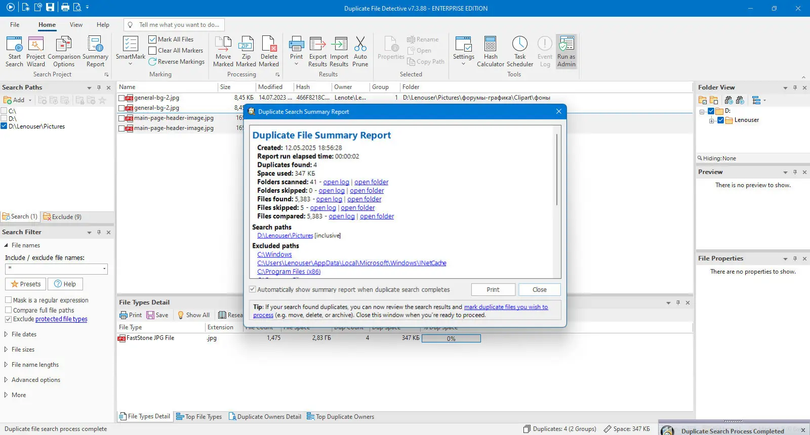 Описание Duplicate File Detective