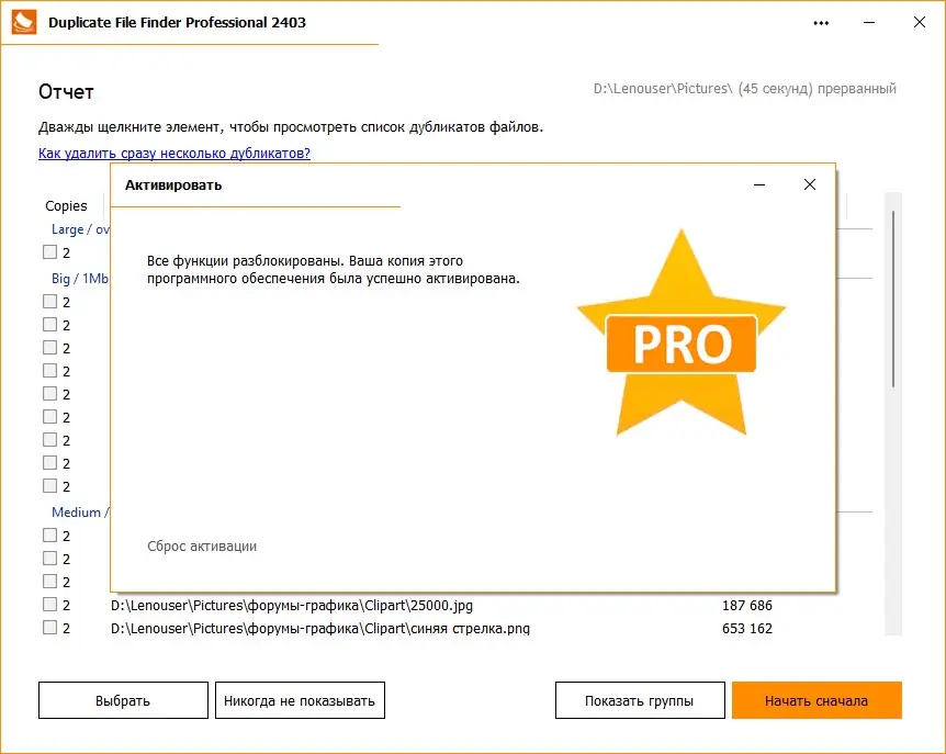 - Интуитивно понятный интерфейс с возможностью группировки дубликатов