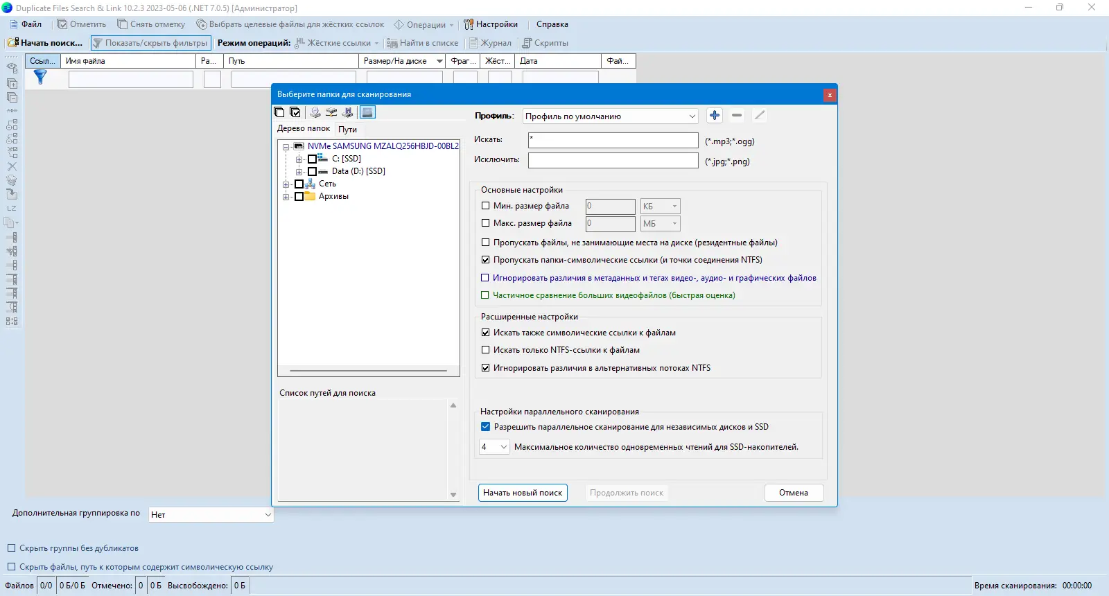 Duplicate Files Search & Link — это инструмент для точного поиска дублирующихся файлов и анализа NTFS-ссылок на жёстких дисках. Программа выполняет побайтовое сравнение данных, позволяя обнаруживать полные копии, независимо от имён или путей. Также поддерживается выявление жёстких и символьных ссылок, указывающих на один и тот же файл, что помогает эффективно управлять дисковым пространством.