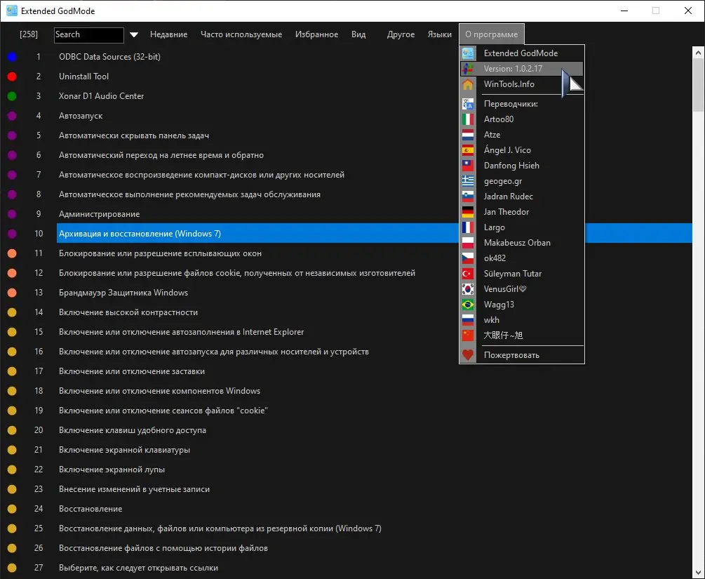 - Объединяет элементы из стандартного GodMode, панели управления и административных инструментов