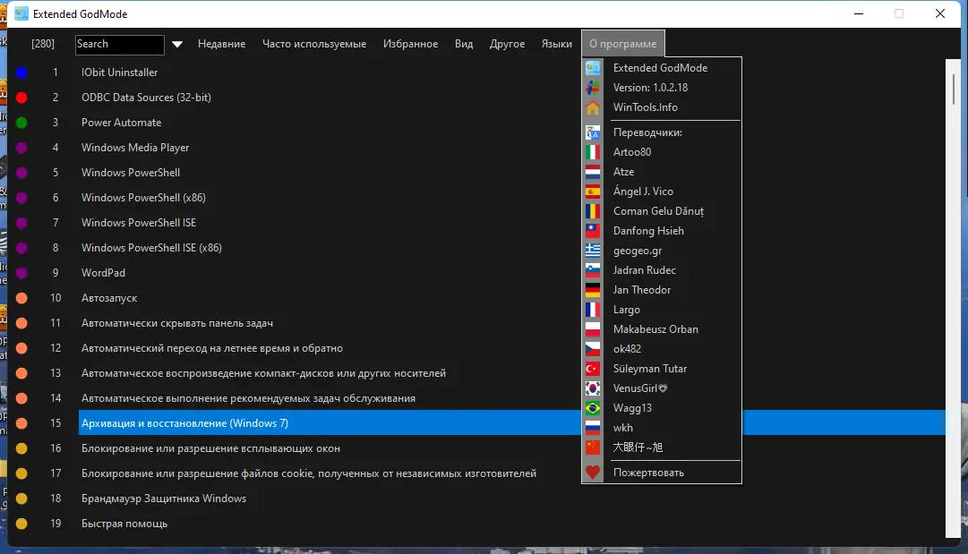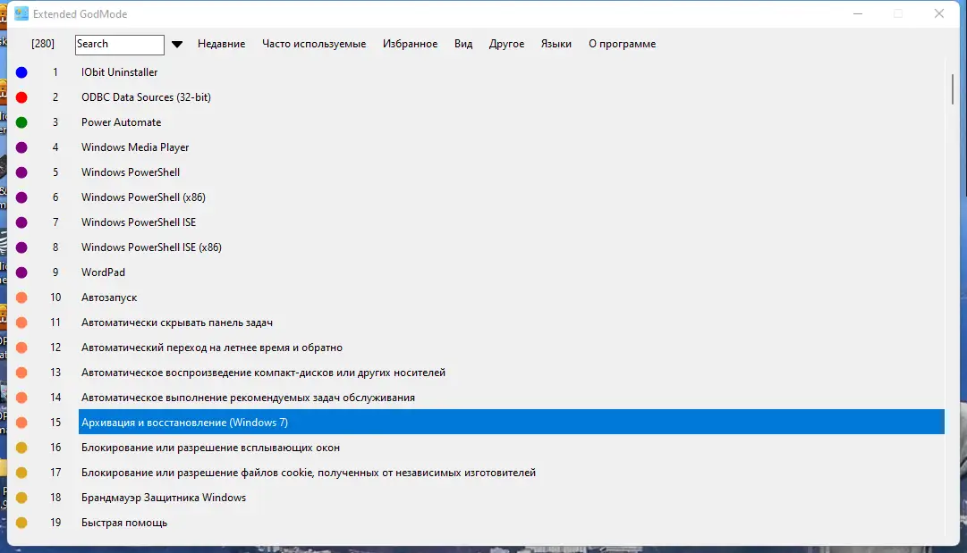 Extended GodMode создан на основе известной функции GodMode в Windows, которая изначально предоставляет доступ к обширному списку системных настроек. Утилита расширяет этот список, интегрируя дополнительные компоненты из Control Panel и Admin Tools, что делает её более универсальной и функциональной. Все элементы организованы в логические группы, что упрощает ориентацию даже для неопытных пользователей. Интерфейс остаётся интуитивным, при этом добавляются мощные инструменты фильтрации и персонализации.