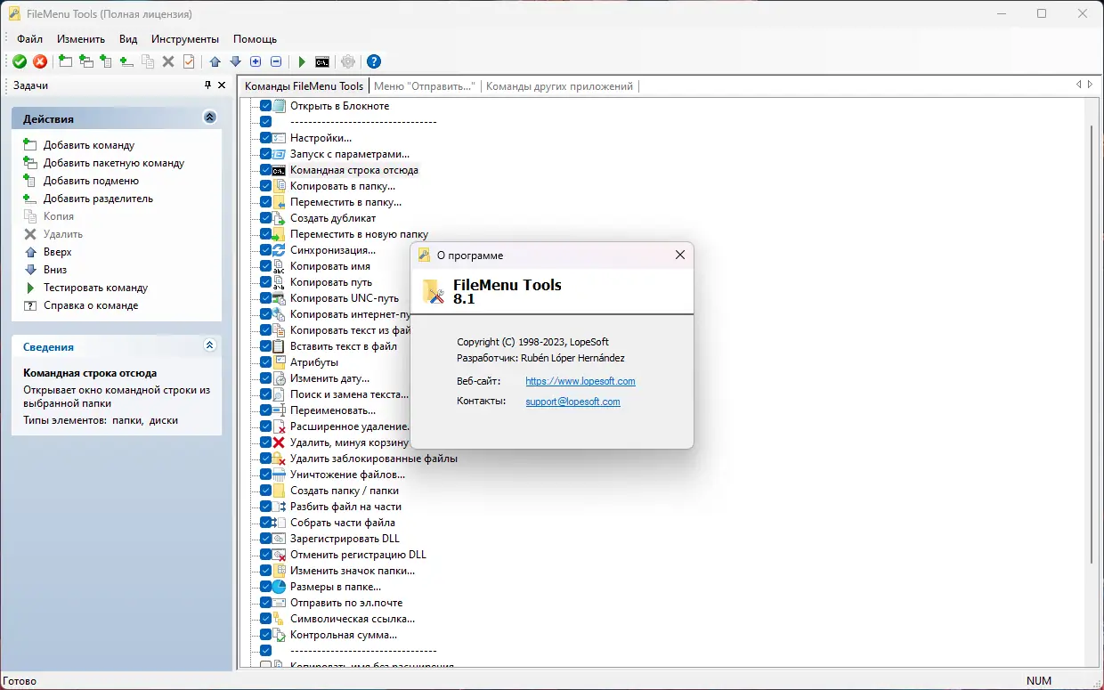 - Глубокая настройка контекстного меню и поддержка пользовательских команд