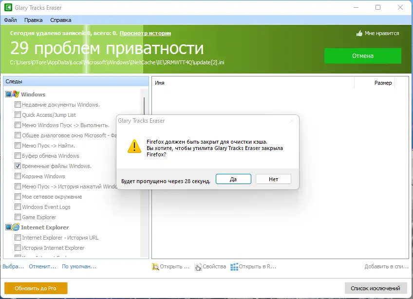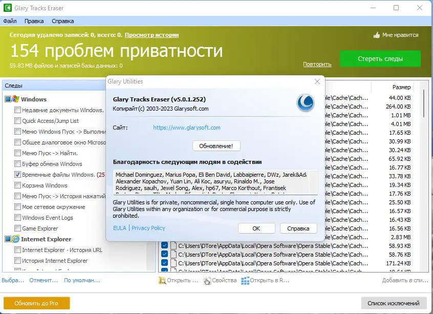 Как пользоваться Glary Tracks Eraser