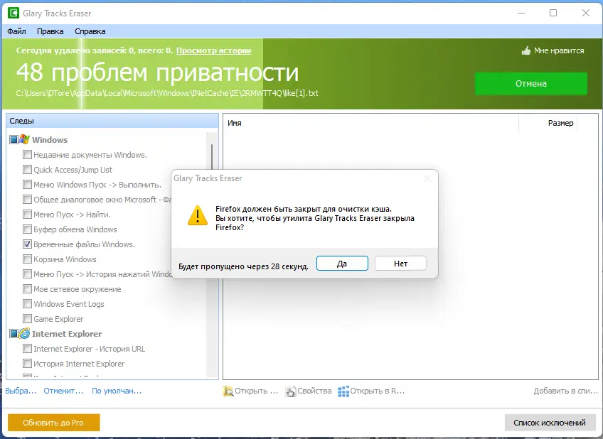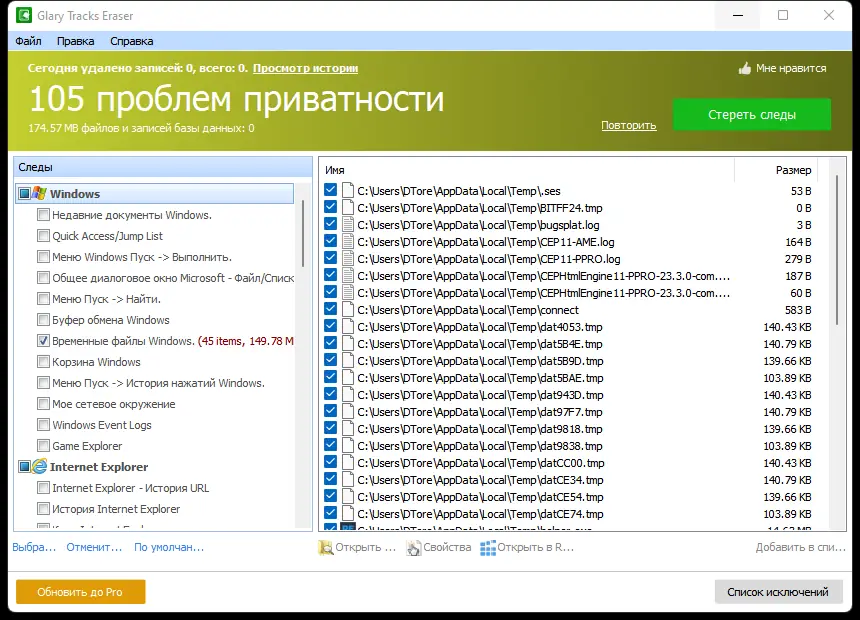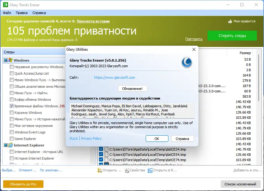 Как пользоваться Glary Tracks Eraser