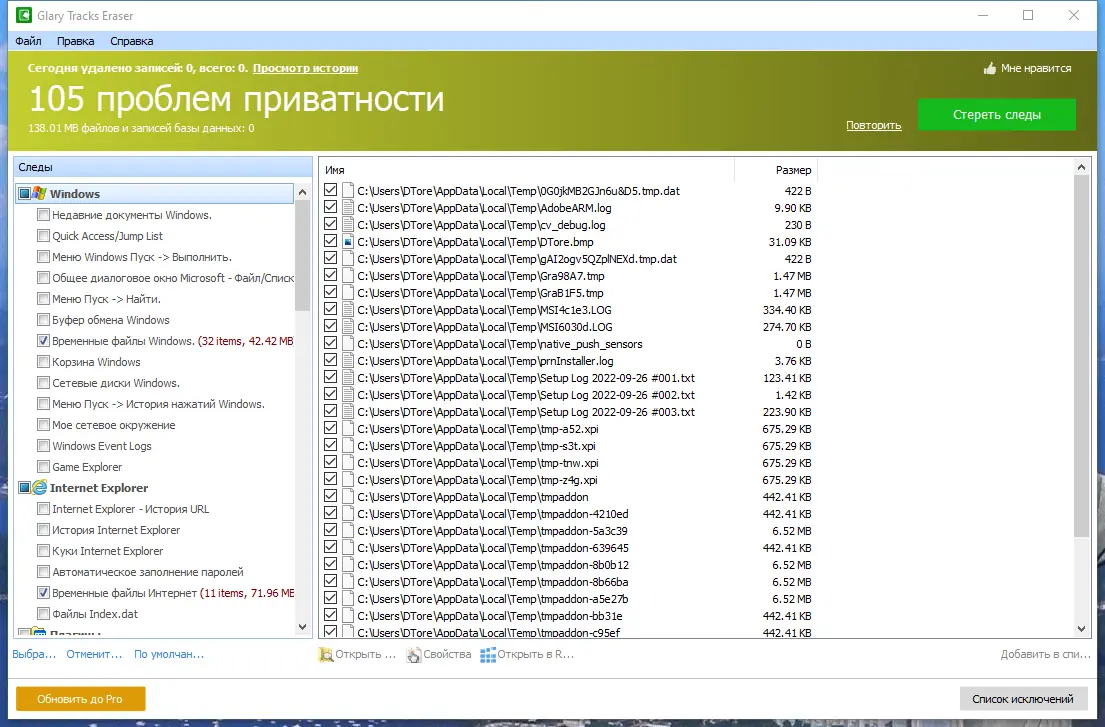Как пользоваться Glary Tracks Eraser