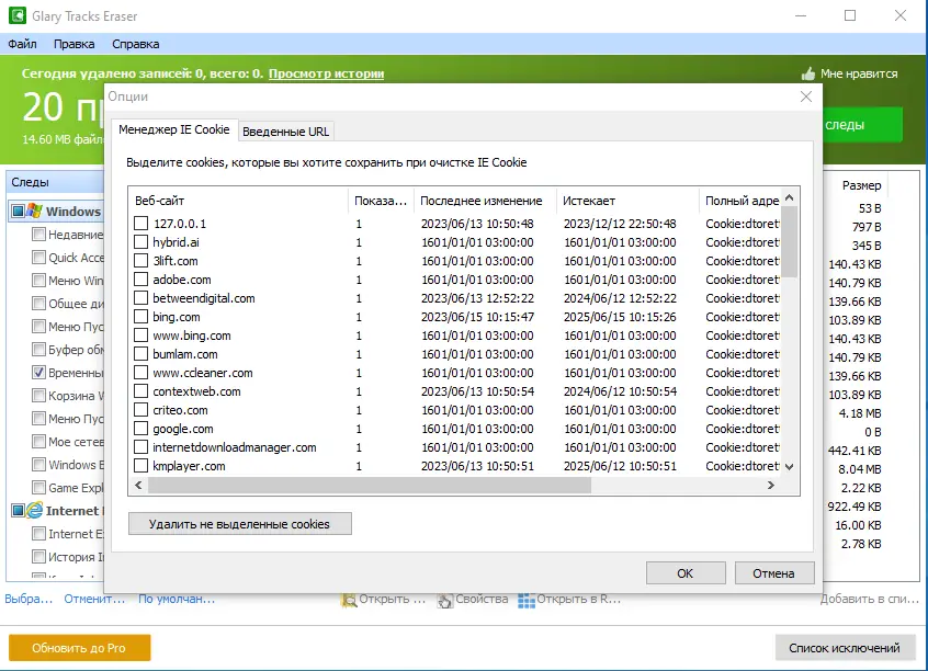 Программа позволяет точно настраивать, какие именно данные подлежат удалению, обеспечивая гибкий контроль над процессом очистки.