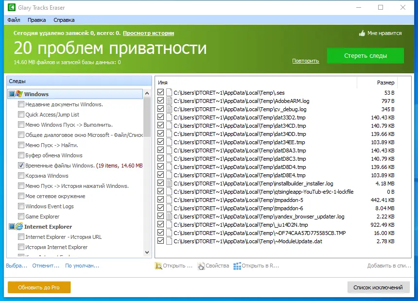 Glary Tracks Eraser — это надежное приложение для очистки цифровых следов, оставляемых операционной системой, приложениями и веб-браузерами. Программа эффективно защищает приватность, удаляя историю действий, временные файлы, куки, кеш и другие данные, которые могут раскрыть информацию о пользователе. Подходит для тех, кто заботится о конфиденциальности при работе на персональном компьютере.