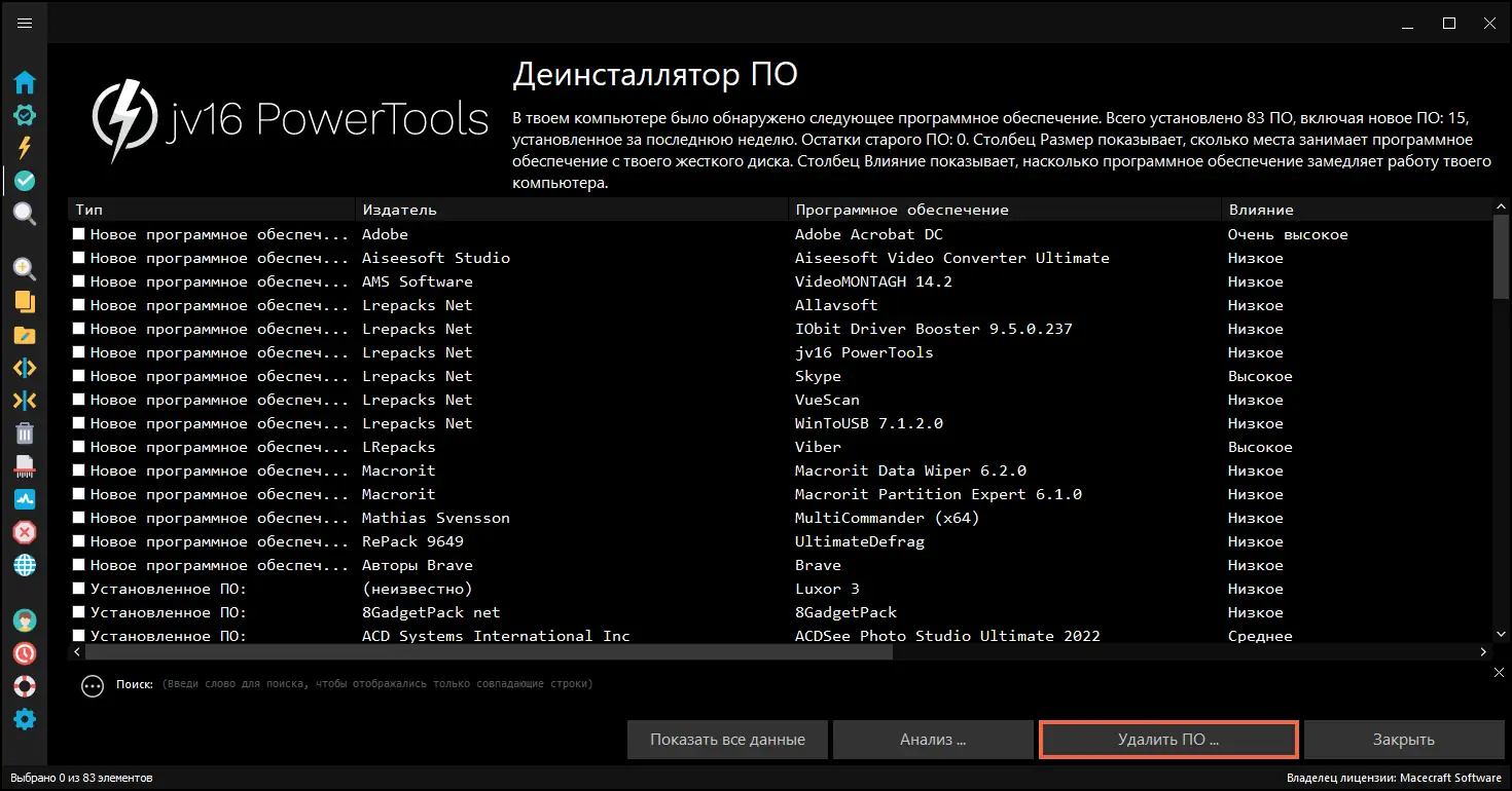 jv16 PowerTools — это комплексное решение для глубокой оптимизации и тестирования операционной системы, сочетающее в себе 24 специализированных инструмента. Программа ориентирована на эффективную работу с системным реестром, файловой системой и параметрами автозагрузки. Она позволяет не только очищать систему от мусора, но и контролировать её состояние на уровне детального анализа.