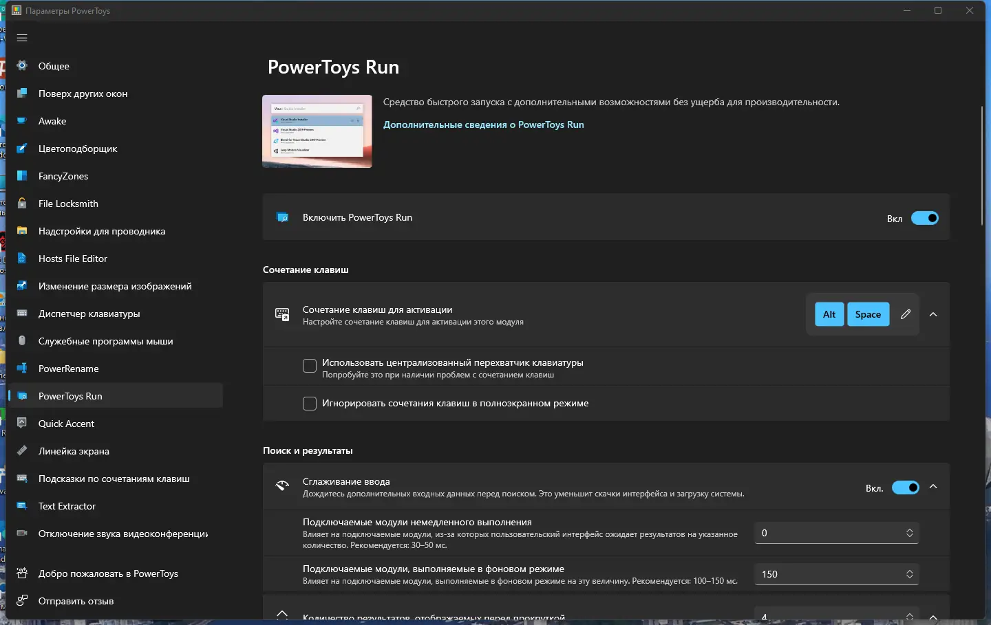 - Панель PowerToys позволяет быстро запускать приложения, файлы и папки через удобный лаунчер с горячими клавишами.