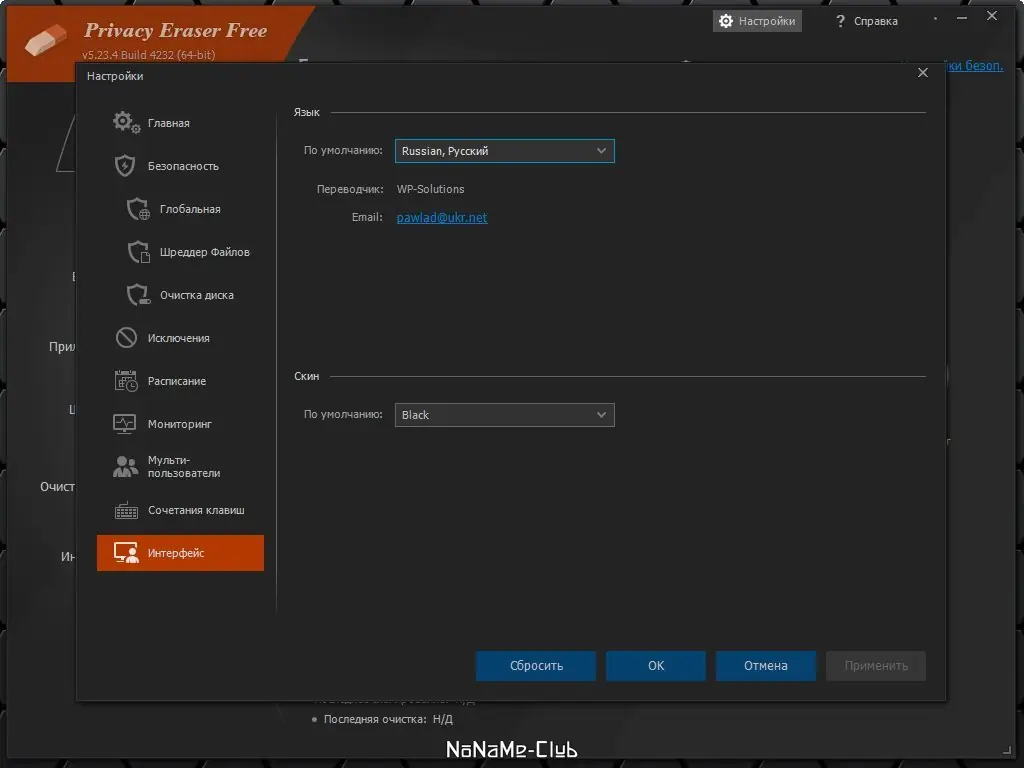 Использование Privacy Eraser не требует специальных технических знаний. После запуска приложение автоматически сканирует систему на наличие следов активности, отображая доступные для удаления категории: история браузеров, временные файлы, кэш, куки, записи автозаполнения и другие. Пользователь может вручную выбрать нужные элементы или воспользоваться опцией полной очистки одним кликом. Для постоянной защиты рекомендуется настроить автоматическое выполнение задач по расписанию через встроенный планировщик. Интерфейс поддерживает русский язык, который активируется в настройках через раздел User Interface и выбор языка из списка.