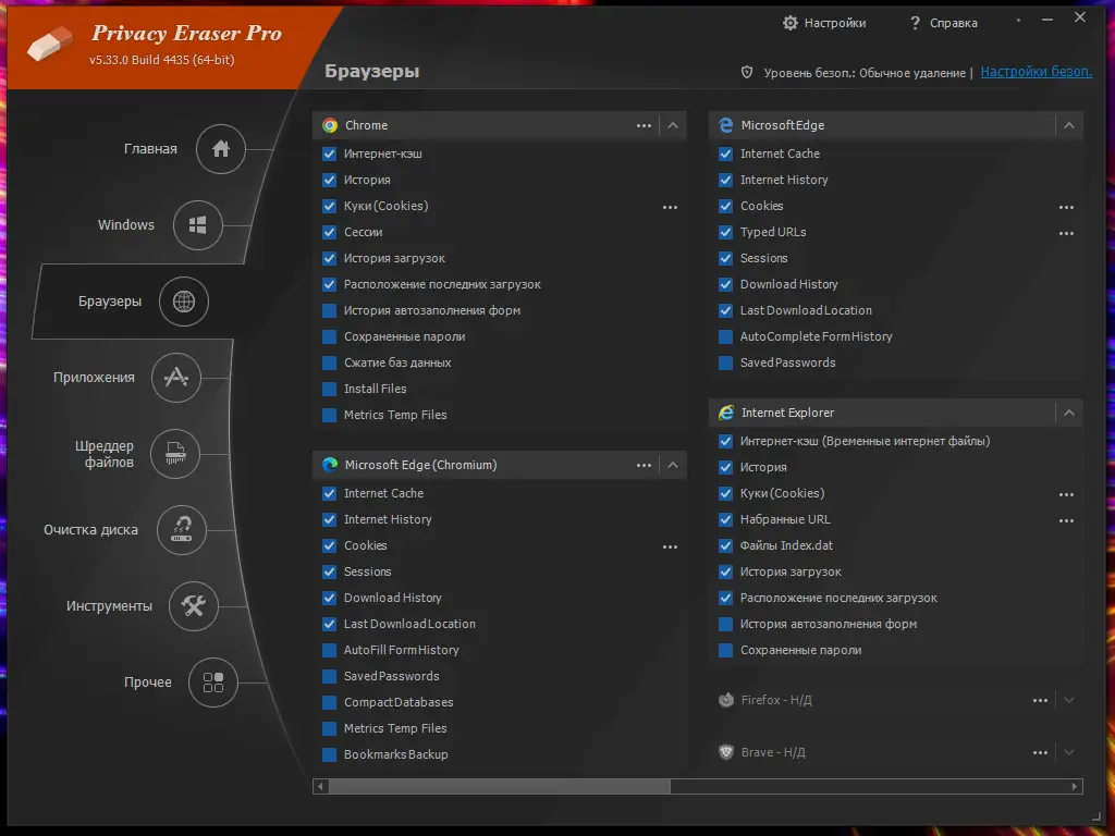 - Поддержка всех популярных браузеров, включая Chrome, Firefox, Edge, Opera и Safari, с полным удалением истории, кэша и cookies.