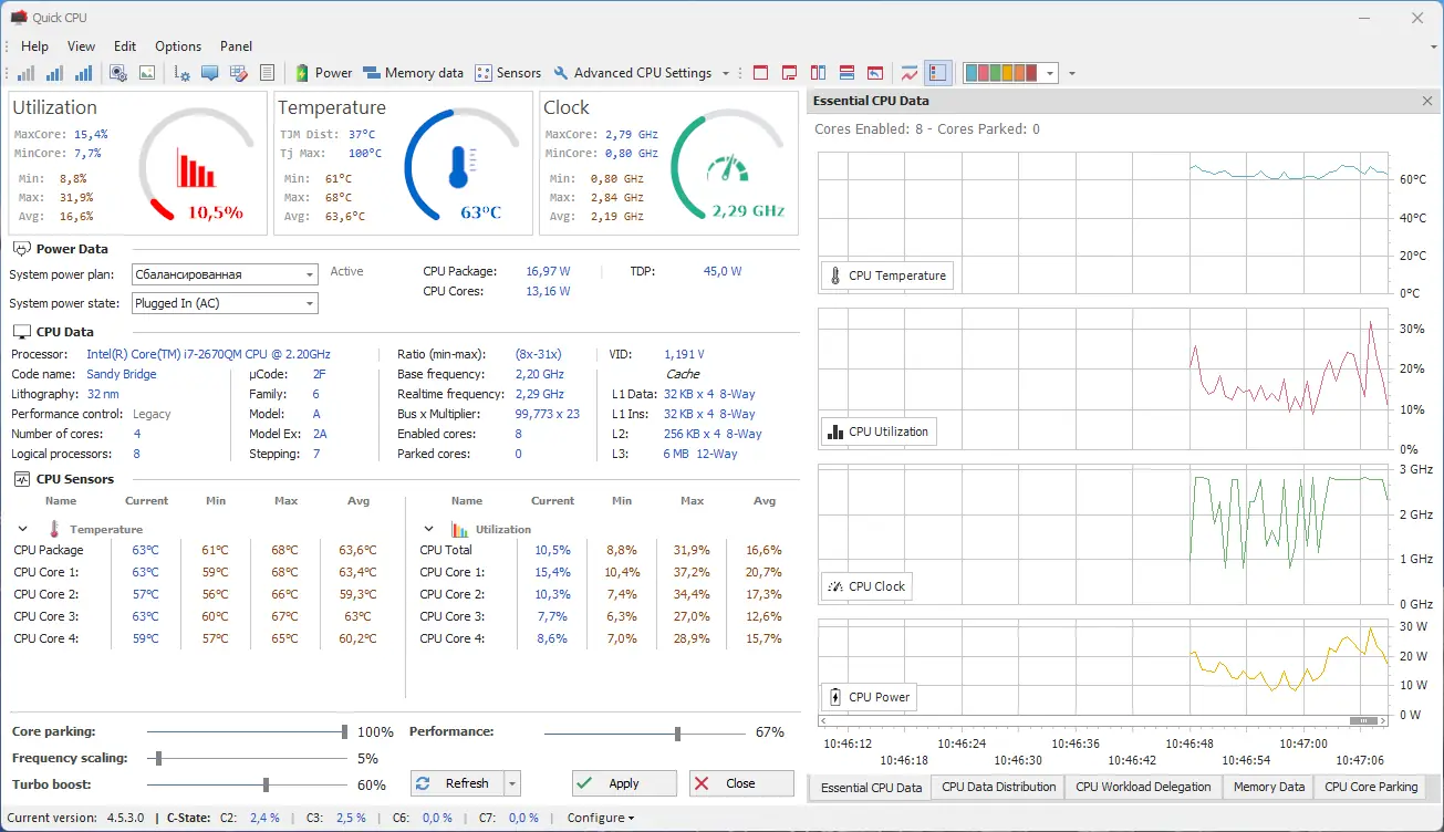 Quick CPU предлагает широкие возможности для тонкой настройки производительности процессора, что особенно ценно для пользователей, стремящихся к максимальной эффективности. Программа сочетает в себе функции мониторинга и управления, что делает её универсальным инструментом. При этом использование требует определённых знаний, поскольку неправильные настройки могут негативно сказаться на стабильности системы.
