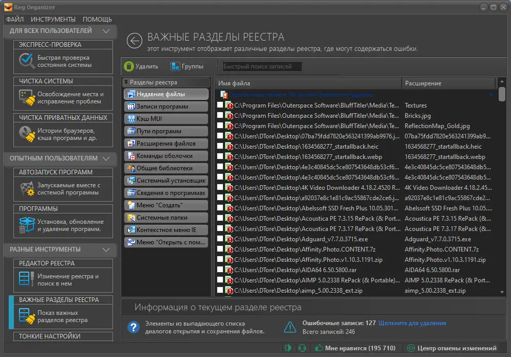 Программа поддерживает резервное копирование реестра перед критическими операциями, что минимизирует риски при внесении изменений.