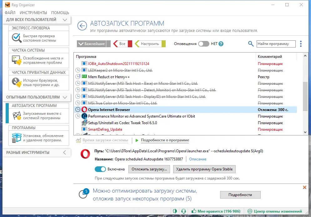- Менеджер автозагрузки, позволяющий отключать ненужные приложения и ускорять запуск системы.