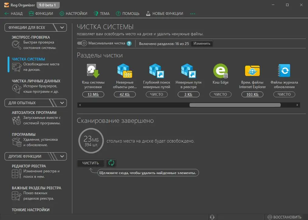 - Глубокий анализ и чистка реестра от устаревших и неверных записей.