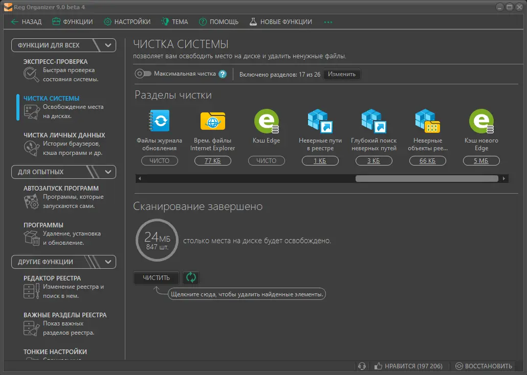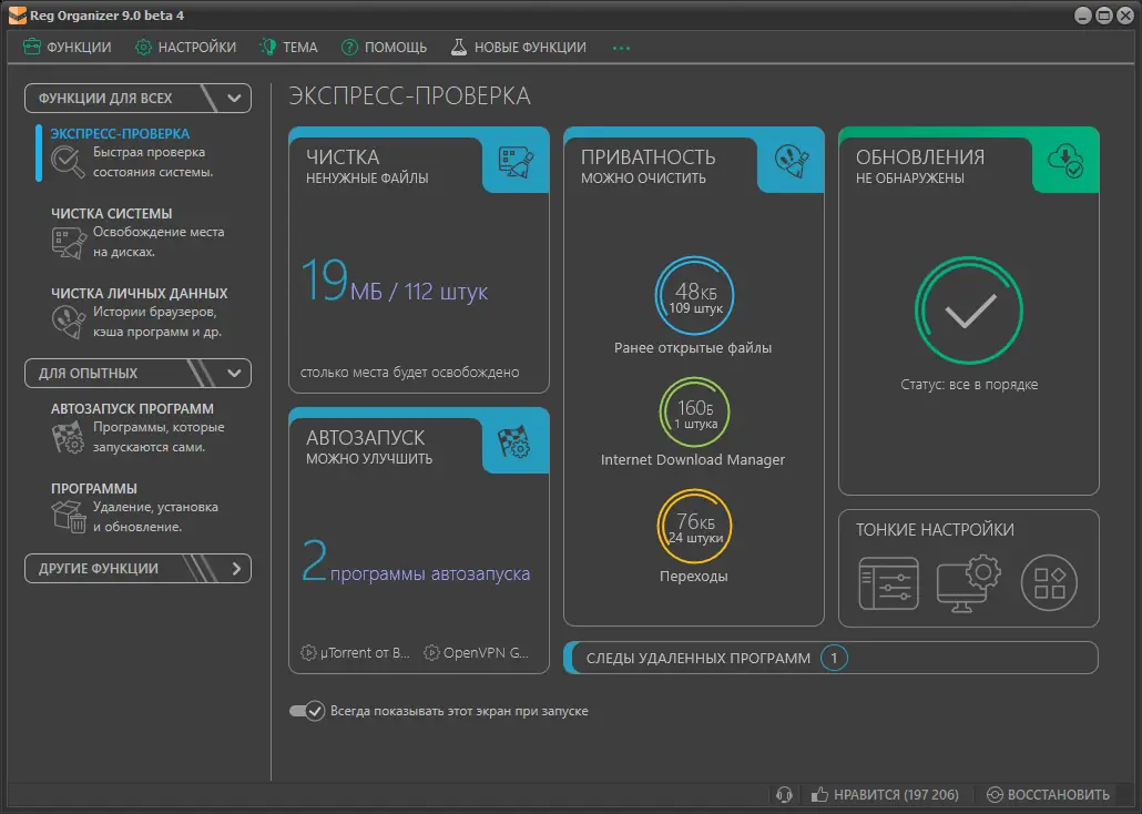 - Высокая точность поиска и удаления остаточных записей реестра.