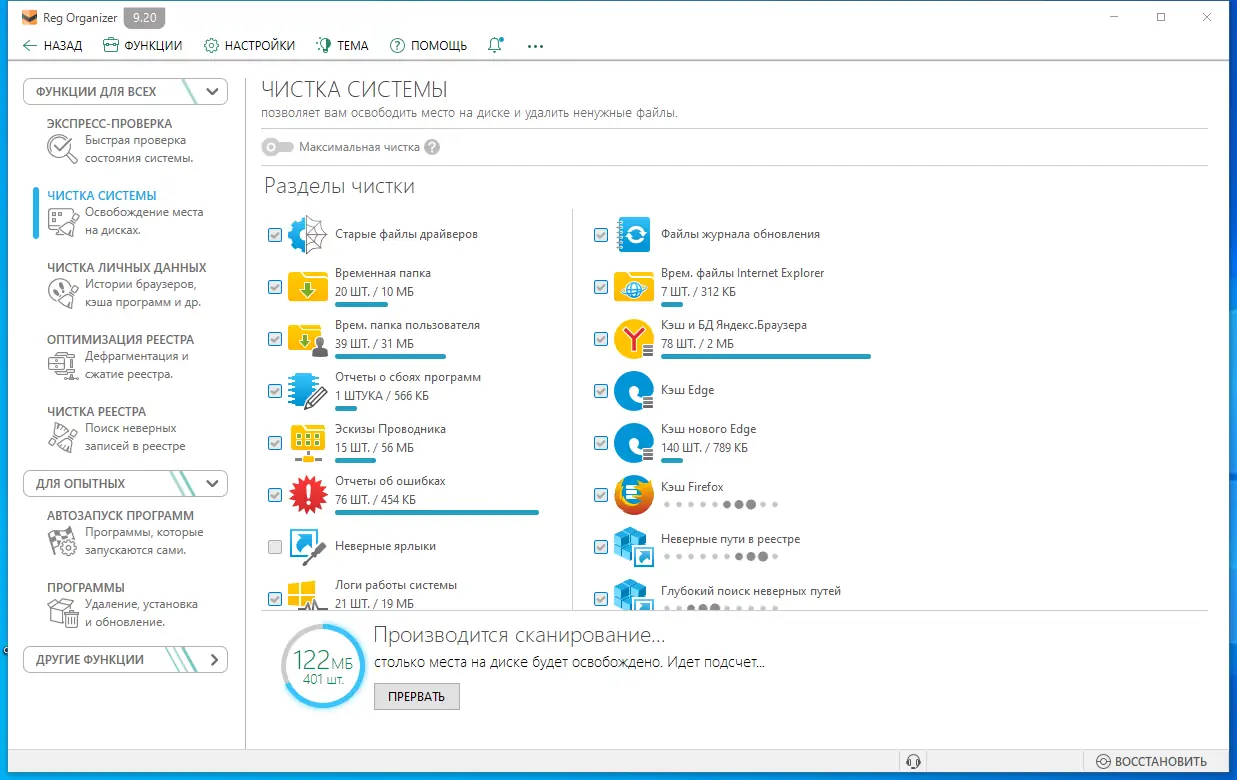 - Автоматическая очистка временных файлов, кэша и ненужных обновлений Windows