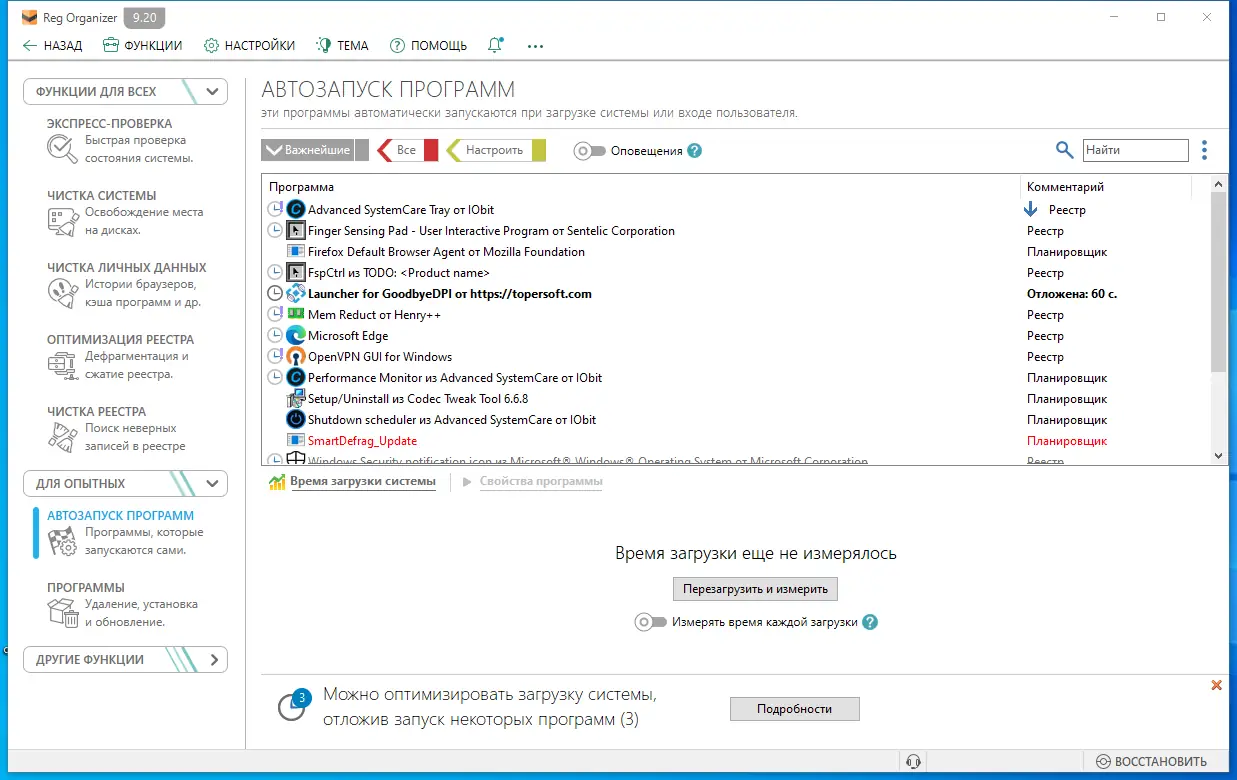 - Расширенный менеджер автозагрузки для контроля запускаемых при старте системы приложений