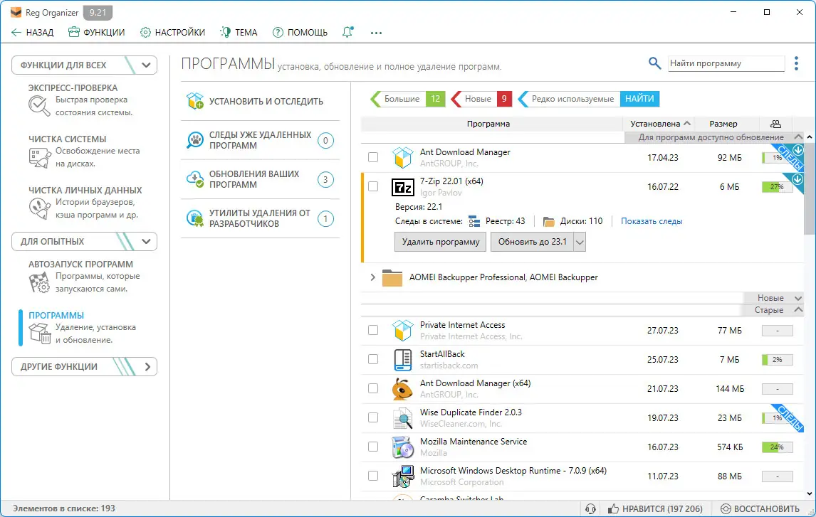 - Проводит полное удаление программ с использованием технологии Full Uninstall™, удаляя не только основные файлы, но и все следы в реестре и на диске.