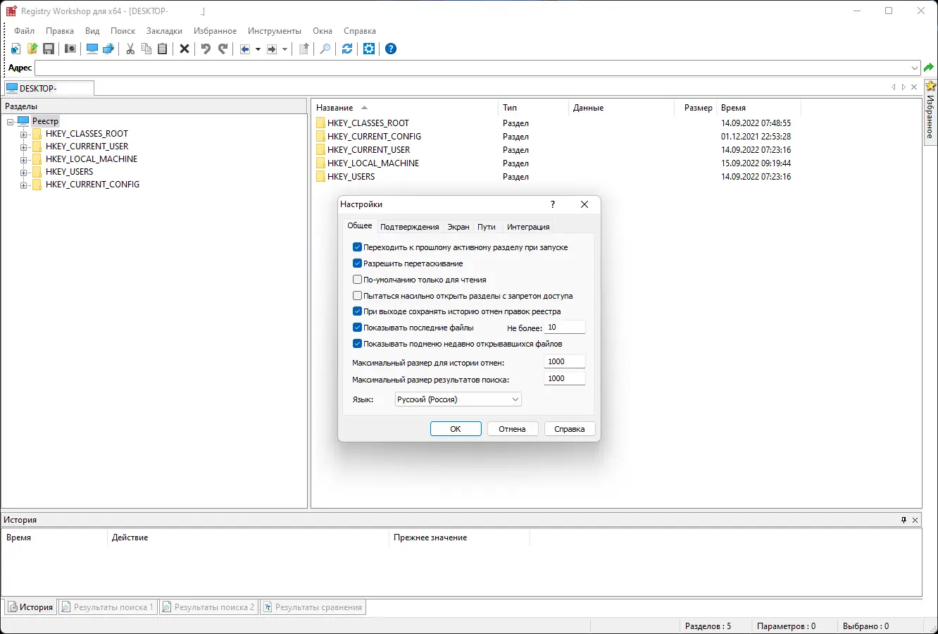 Программа позволяет открывать несколько окон реестра одновременно, что упрощает параллельное редактирование и сравнение различных веток.