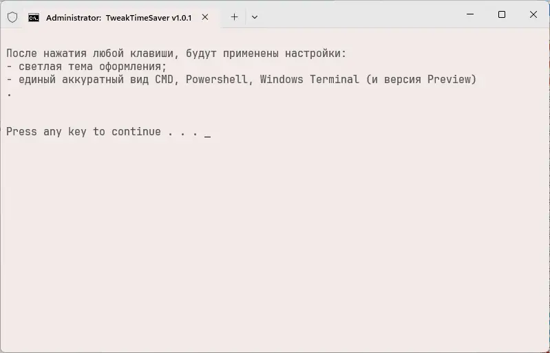 TweakTimeSaver — это набор командных сценариев .cmd, предназначенный для быстрой и безопасной настройки операционных систем Windows 11 и Windows 10 после чистой установки или сброса. Решение предлагает готовые, тщательно подобранные параметры, которые повышают удобство использования системы, ускоряют её работу и устраняют раздражающие элементы интерфейса. Все изменения применяются через понятные по названию шаги, которые можно запускать в любой последовательности, пропуская ненужные.