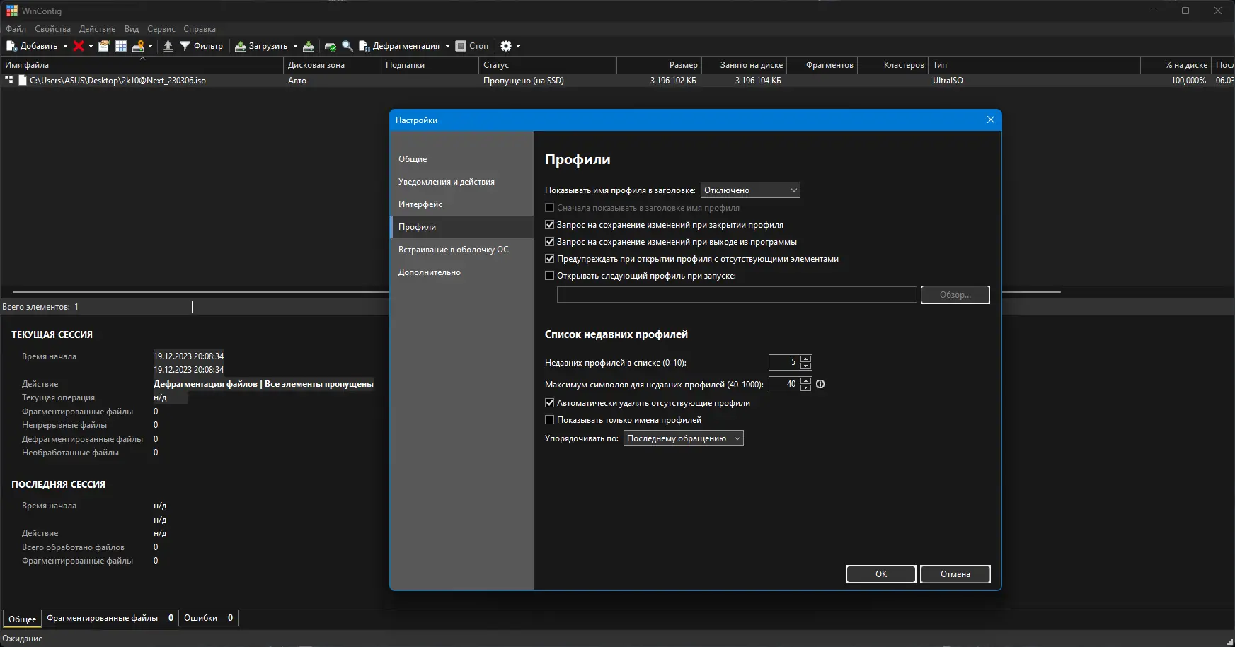 - Поддерживается работа с профилями, что позволяет сохранять списки часто используемых файлов для повторной дефрагментации.