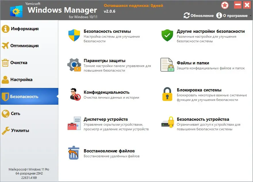 - Включает инструменты для повышения безопасности, такие как шифрование файлов, настройка UAC и контроль доступа к дискам.
