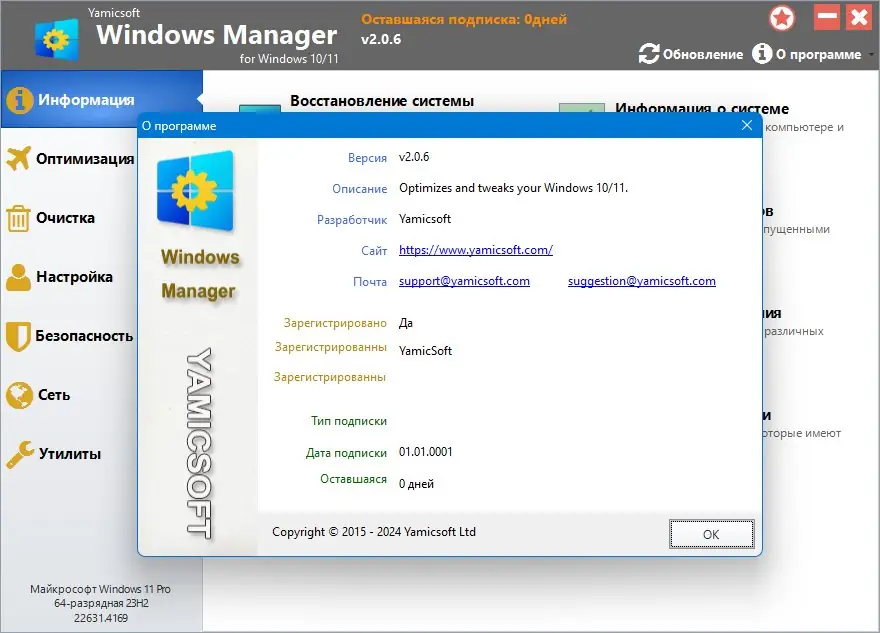 Windows Manager — мощный инструмент для комплексной оптимизации, настройки и обслуживания операционных систем Windows 10 и 11. Программа объединяет более сорока утилит, охватывающих очистку, персонализацию, безопасность, управление сетью и системными процессами. Благодаря интуитивному интерфейсу и широкому функционалу, она подходит как новичкам, так и продвинутым пользователям, стремящимся повысить производительность и стабильность своей системы.