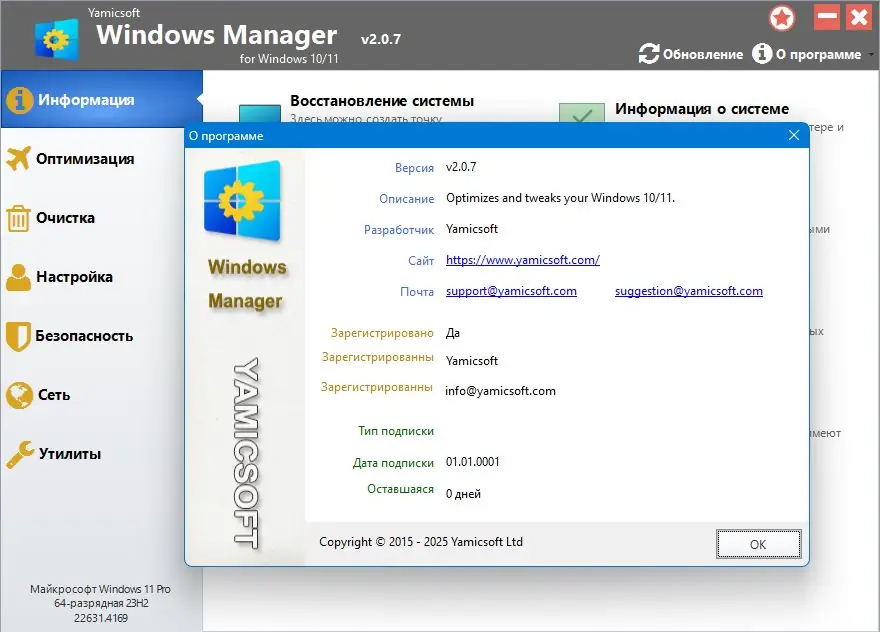 Windows Manager — комплексный инструмент для настройки, оптимизации и обслуживания операционных систем Windows 10 и 11. Утилита объединяет более сорока встроенных функций, направленных на ускорение работы системы, очистку от ненужных файлов, восстановление реестра, персонализацию интерфейса и повышение безопасности. Программа подходит как для новичков, так и для опытных пользователей, стремящихся максимально эффективно использовать возможности своей системы.