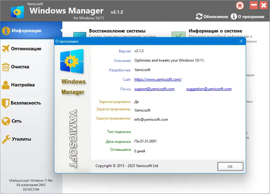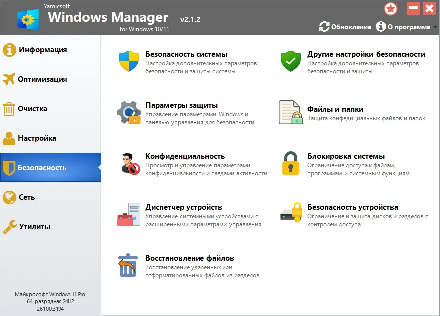 Windows Manager — универсальная утилита для комплексной оптимизации, настройки и обслуживания операционных систем Windows 10 и 11. Программа объединяет более сорока инструментов, направленных на повышение производительности, стабильности и безопасности системы. С её помощью можно быстро очистить реестр, настроить автозагрузку, персонализировать интерфейс и восстановить повреждённые компоненты.