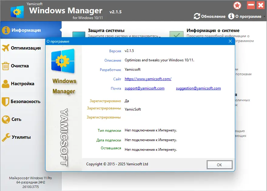 Manager — это комплексный инструмент для оптимизации, настройки, восстановления и очистки операционных систем Windows 10 и 11. Утилита объединяет более сорока встроенных функций, позволяя ускорить работу системы, устранить ошибки, повысить стабильность и безопасность, а также персонализировать интерфейс под индивидуальные предпочтения пользователя. Программа подходит как новичкам, так и опытным пользователям, стремящимся выжать максимум от своей системы.