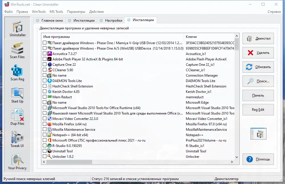 - Модуль Clean Uninstaller позволяет полностью удалять программы, включая остаточные файлы и записи в реестре, что предотвращает накопление мусора после деинсталляции приложений.