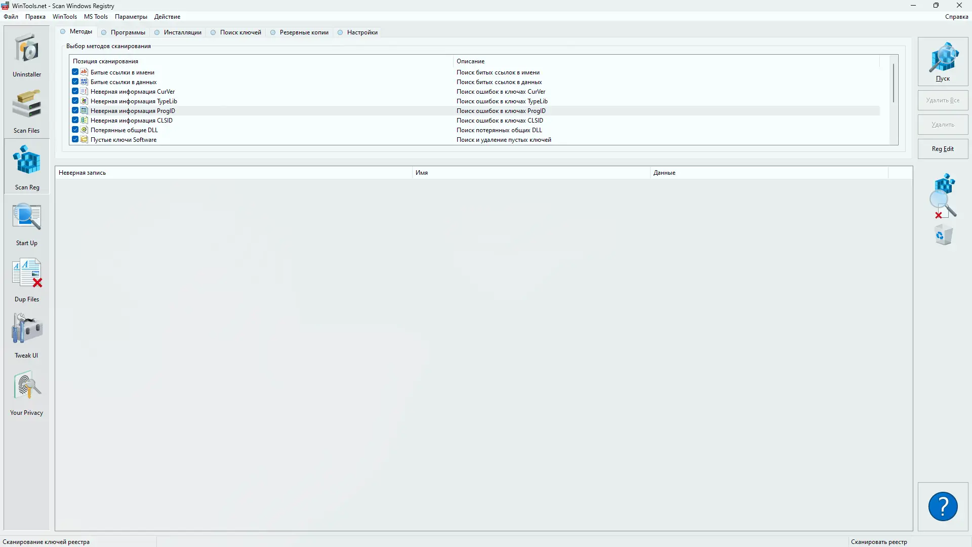 - Функция Scan Registry анализирует реестр Windows на наличие недействительных и устаревших записей, возникающих после удаления программ, и устраняет их.