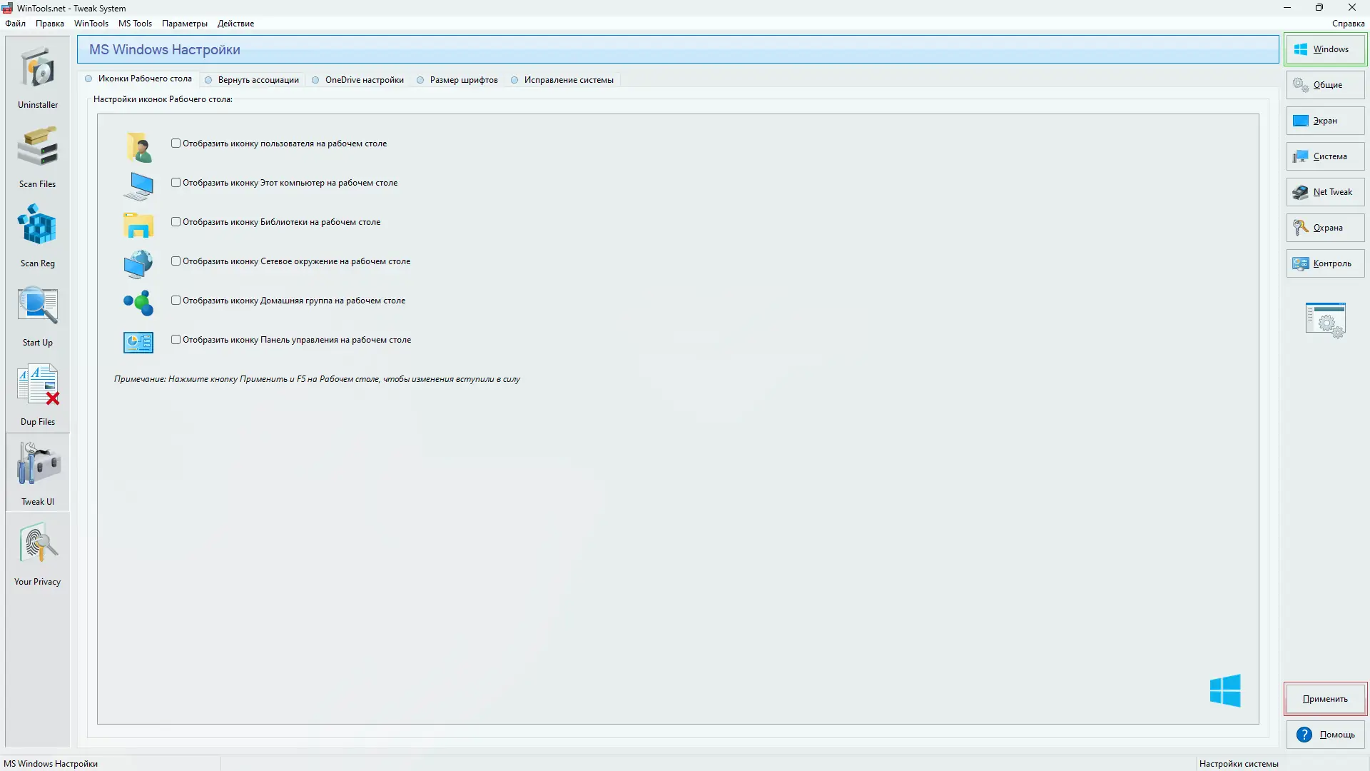 WinTools.net — это многофункциональный инструмент для глубокой оптимизации и настройки операционной системы Windows. Программа включает набор модулей, направленных на очистку системы, управление автозагрузкой, настройку интерфейса и безопасное удаление данных. Она помогает освободить дисковое пространство, ускорить работу ПК и повысить стабильность системы.