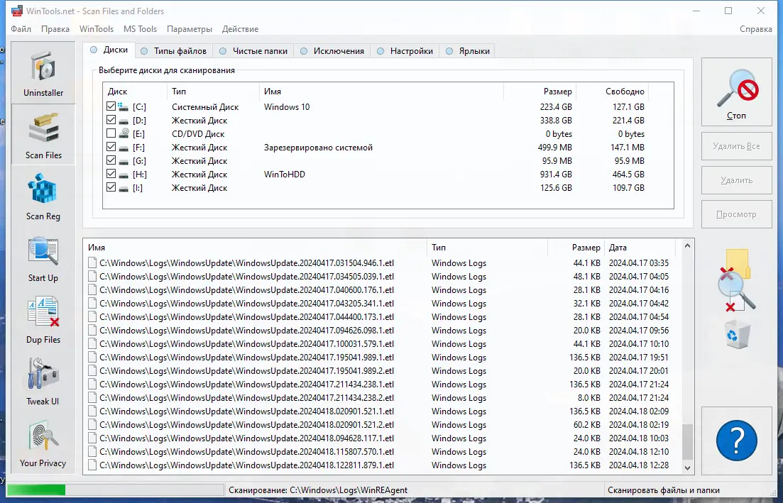 - Инструмент Scan Files сканирует жёсткий диск на наличие временных и ненужных файлов, возникающих при работе приложений, и предлагает их безопасное удаление.