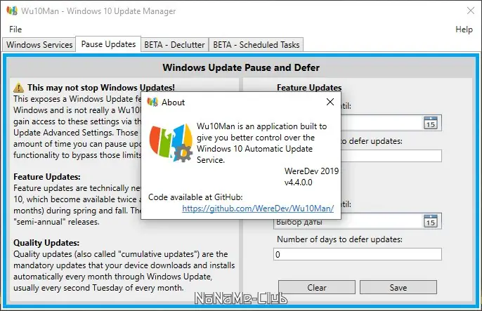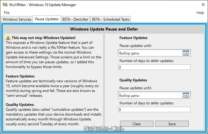 - Поддержка длительной приостановки обновлений, в отличие от стандартных ограничений Windows
