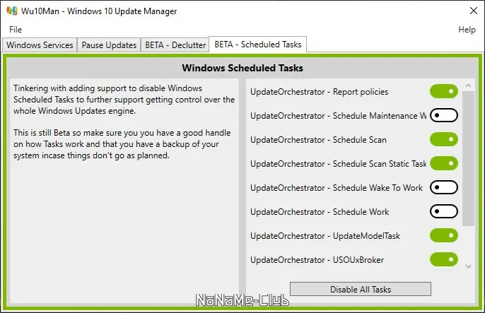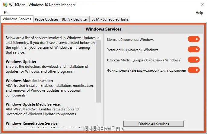 - Полный контроль над службами и задачами, отвечающими за обновления