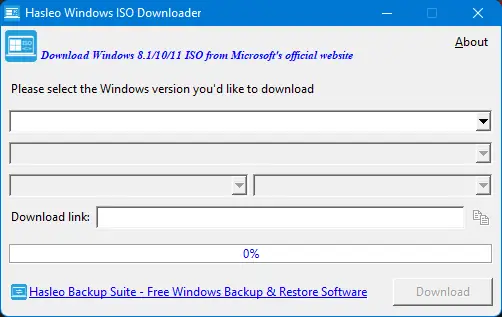 Hasleo Windows ISO Downloader — это бесплатное приложение для быстрой загрузки официальных образов Windows 11, 10 и 8.1 напрямую с серверов Microsoft. Программа не требует установки, обладает минималистичным интерфейсом и поддерживает работу на системах начиная с Windows Vista. Подходит для пользователей, которым необходимо получить чистый ISO-файл для установки или создания загрузочной флешки.