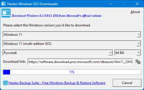 Hasleo Windows ISO Downloader — это легковесный бесплатный инструмент, предназначенный для получения официальных ISO-образов операционных систем Windows 11, Windows 10 и Windows 8.1 напрямую с серверов Microsoft. Программа не требует установки, работает на всех актуальных версиях Windows и позволяет быстро получить доступ к чистым установочным файлам. Подходит как для опытных пользователей, так и для новичков, желающих переустановить систему или создать загрузочную флешку.