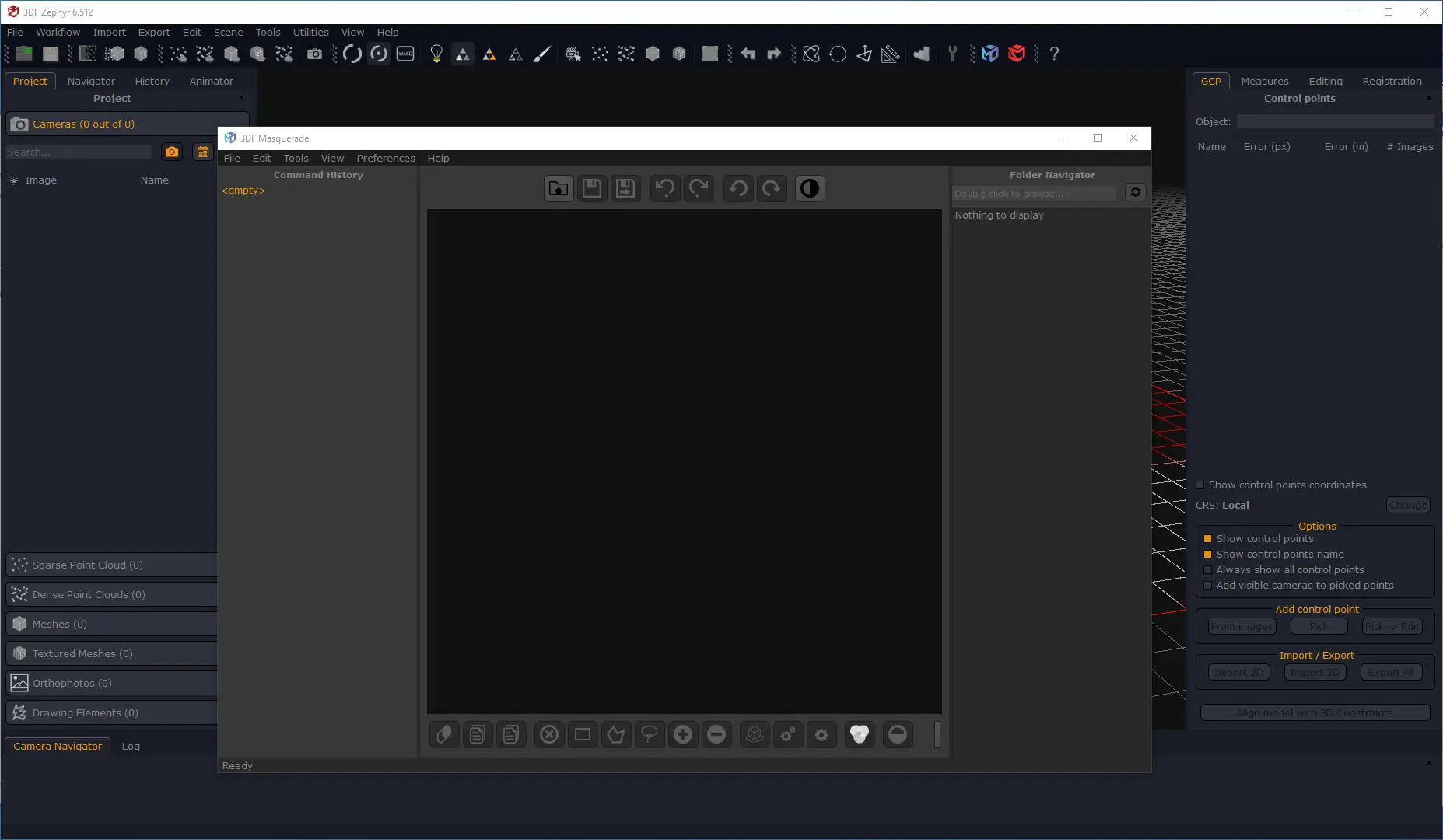 Работа с программой начинается с импорта набора фотографий, желательно охватывающих объект со всех сторон. После загрузки изображений 3DF Zephyr автоматически выполняет сопоставление точек, выравнивание камер и построение разреженного облака точек. Далее пользователь может запустить процесс генерации плотного облака, меша и текстурирования, на каждом этапе настраивая параметры детализации и производительности. Для продвинутых задач доступны инструменты измерения расстояний, объёмов и углов, а также создание контурных линий и профилей. Особенностью является встроенное видео-экспортное ядро, позволяющее создавать анимации без необходимости использования стороннего ПО. Для специалистов в области дистанционного зондирования и картографии реализована функция создания ортомозаик с геопривязкой.