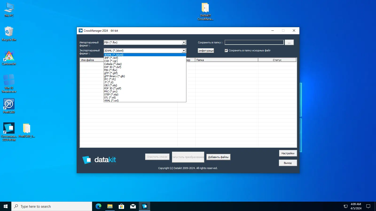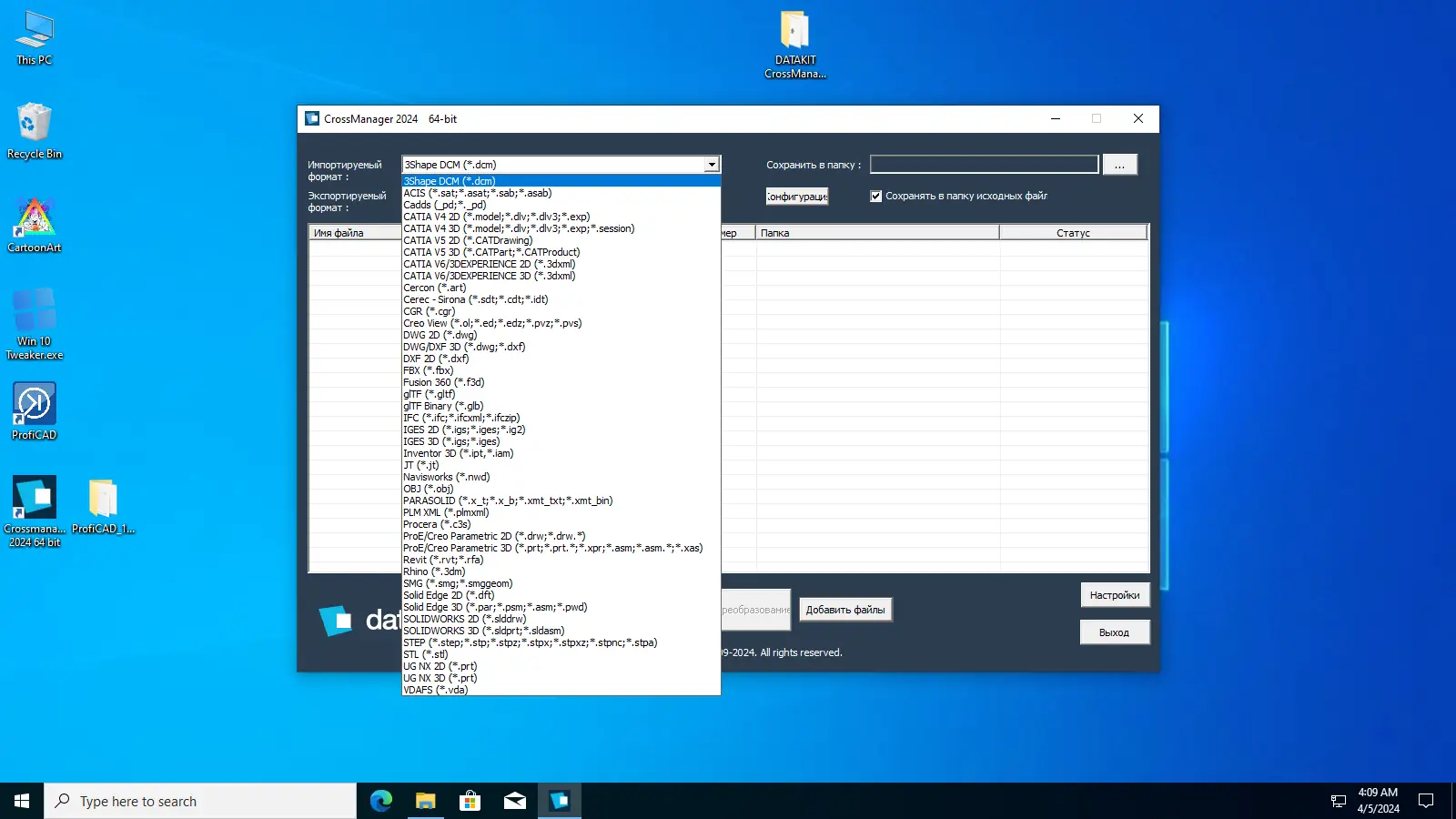 DATAMIT CrossManager — это универсальное программное обеспечение для преобразования CAD-файлов между различными форматами. Приложение поддерживает широкий спектр входных и выходных форматов, обеспечивая высокую точность конвертации. Подходит для инженеров, проектировщиков и специалистов в области промышленного дизайна.