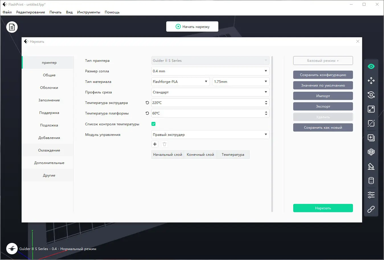 FlashPrint — это слайсер от FlashForge, разработанный специально для оптимизации 3D-печати на устройствах одноимённого бренда. Программа сочетает простоту интерфейса с мощными функциями обработки моделей, поддерживает популярные форматы файлов и предлагает автоматические настройки для быстрого старта. Подходит как для начинающих, так и для пользователей, ценящих стабильность и интеграцию с экосистемой производителя.