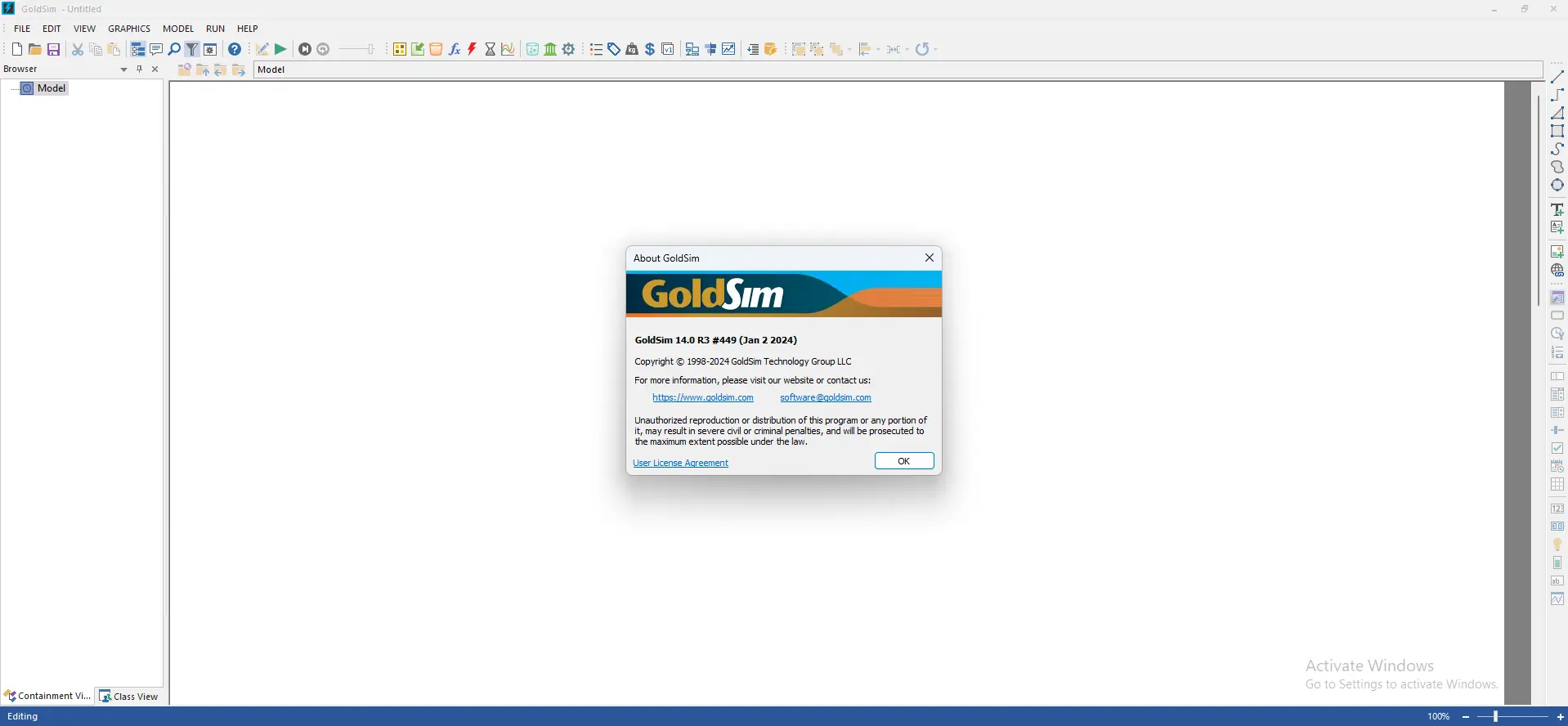 GoldSim доступен для установки на персональные компьютеры под управлением современных версий операционной системы Windows. Программа используется в энергетике, экологии, водных ресурсах, управлении отходами и других областях, где необходим детальный прогноз поведения систем. Установочный файл включает демонстрационные модели и справочную документацию для начинающих пользователей.