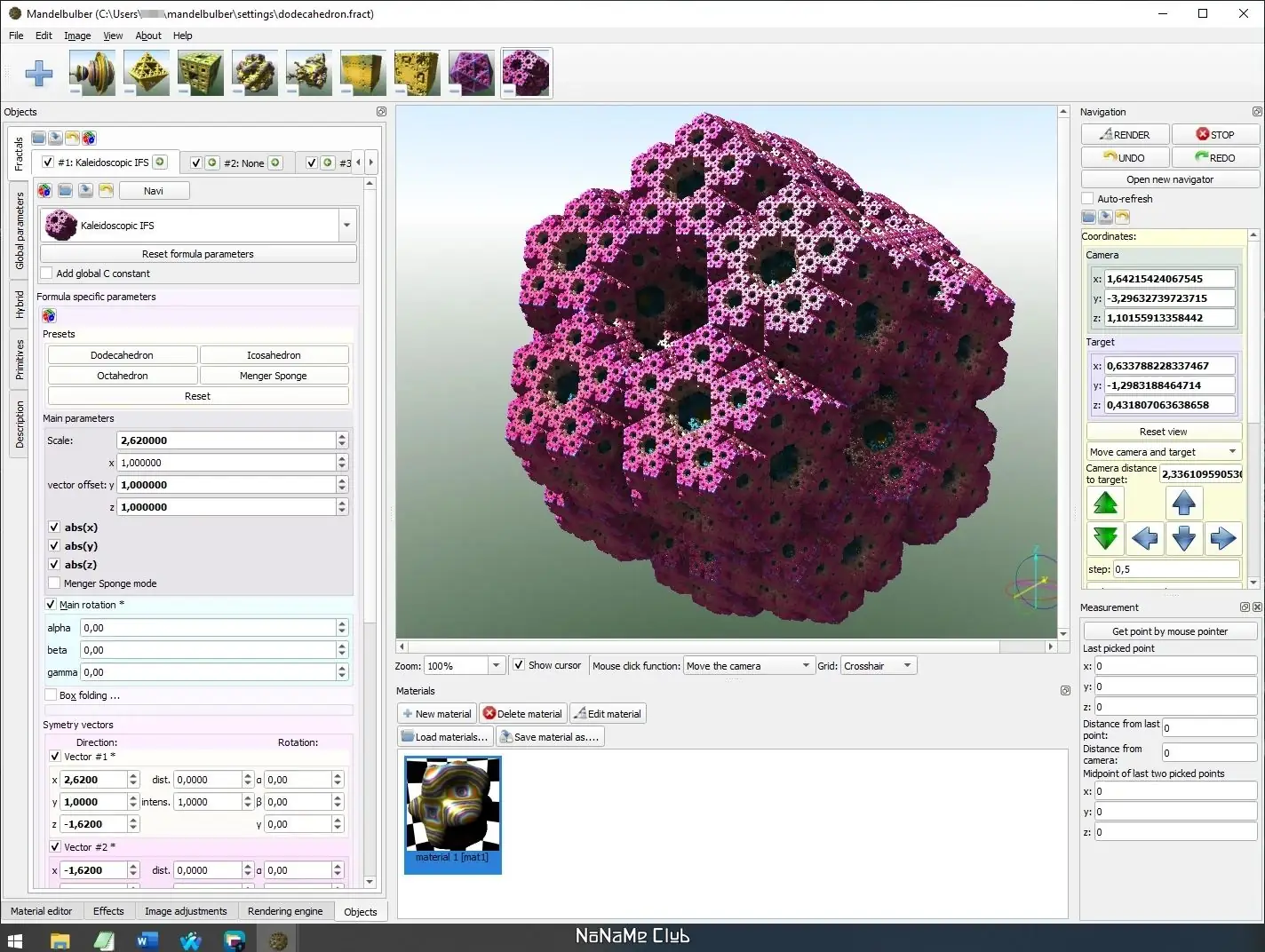 Mandelbulber — экспериментальное программное обеспечение для визуализации и моделирования трёхмерных фракталов, сочетающее математическую точность с художественным подходом. Приложение поддерживает широкий спектр фрактальных типов, включая Mandelbox, IFS и гиперкомплексные структуры, обеспечивая высокую детализацию и реалистичность изображений. Благодаря продвинутым алгоритмам рендеринга, пользователи могут создавать фотореалистичные сцены с глубиной резкости, эффектами затенения и окклюзии.