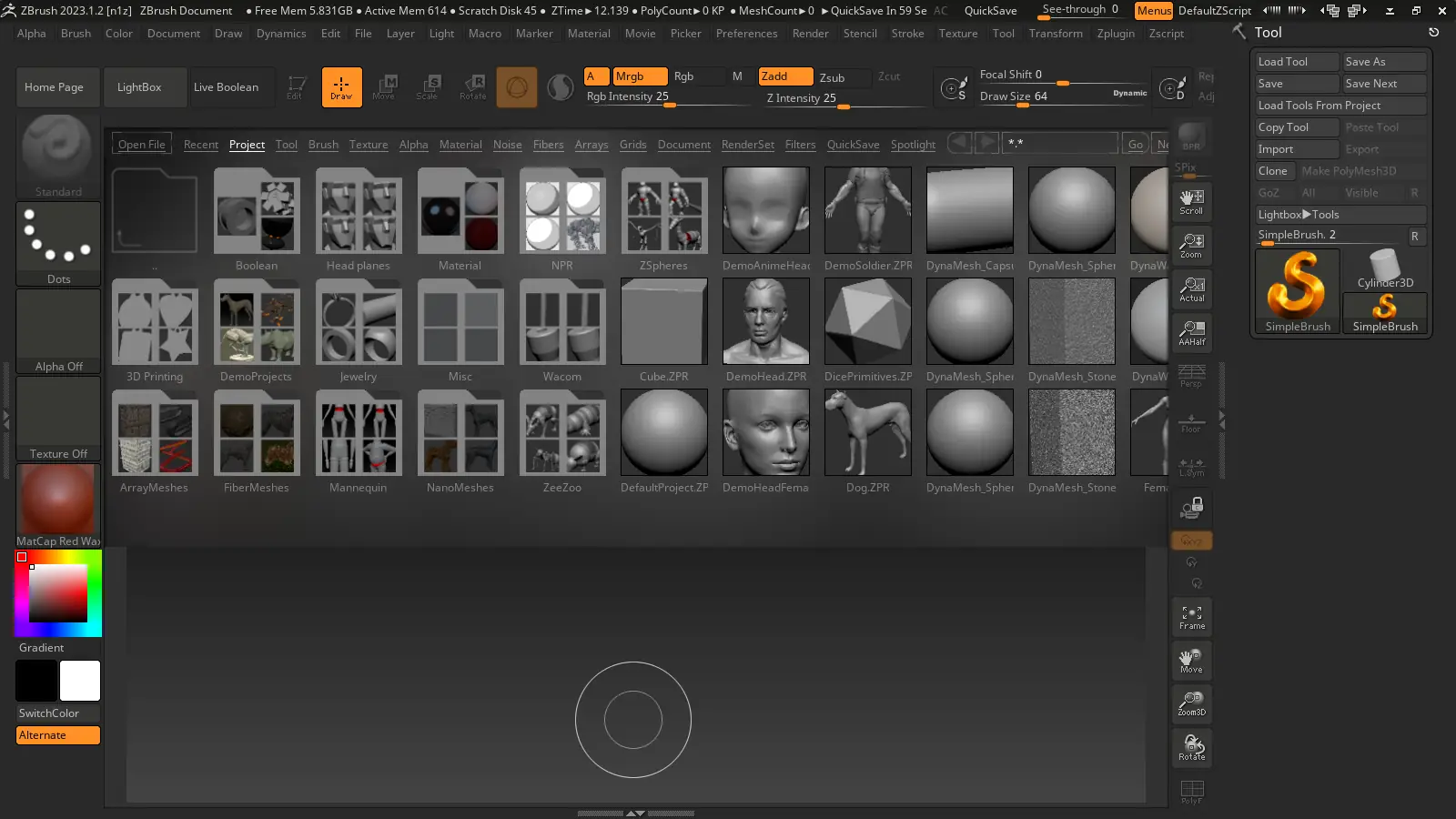 Работа с Maxon ZBrush начинается с выбора базовой формы, называемой динамической скульптурой, которую можно трансформировать с помощью набора специализированных кистей. Пользователь управляет параметрами давления, жесткости и формы инструмента, что позволяет точно контролировать процесс моделирования. Интерфейс построен вокруг радиального меню, обеспечивающего быстрый доступ к инструментам, слоям и настройкам материала. Для ускорения работы доступны функции автоматической симметрии, динамического сглаживания и проекции деталей с одной модели на другую. Программа также поддерживает работу с подинструментами, позволяя комбинировать несколько объектов в рамках одного проекта.